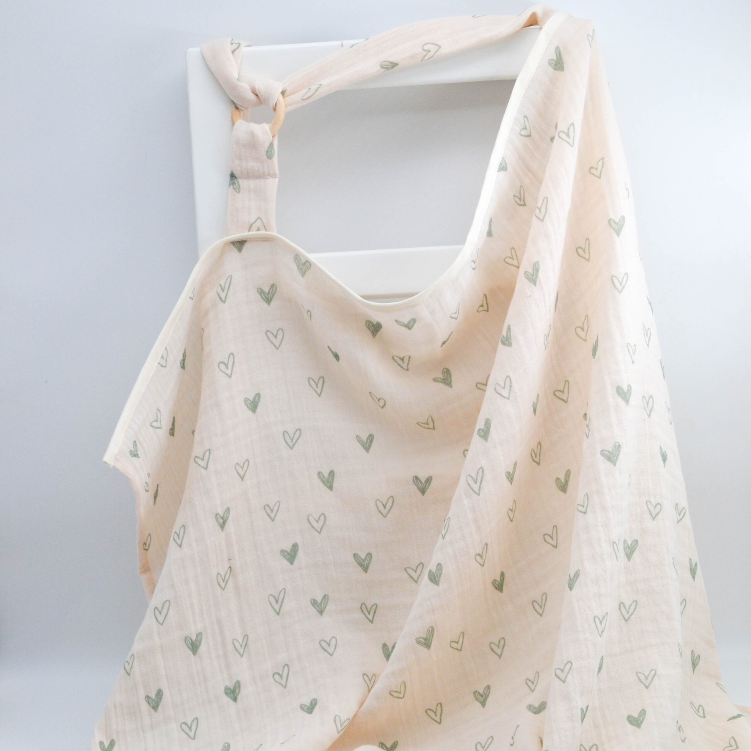 Annelerin konforunu ve pratikliğini ön planda tutan bu ürün, hem emzirme sırasında rahat bir kullanım sunar hem de puset örtüsü olarak bebeğinizi güneşten, rüzgârdan ve dış etkenlerden koruma imkânı sağlar. Üzerindeki zarif yeşil kalpler, sevgi dolu anlarınıza sıcak ve samimi bir dokunuş katıyor.