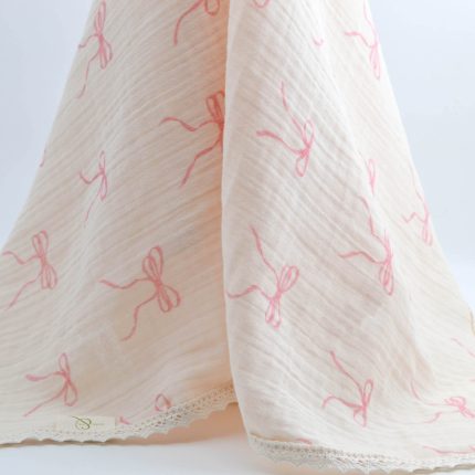 Kenarları Pamuk Dantel ile Detaylandırılmış Dört Kat Desenli Müslin Battaniye