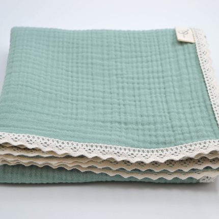 Kenarları Pamuk Dantel ile Detaylandırılmış Dört Kat Desenli Müslin Battaniye