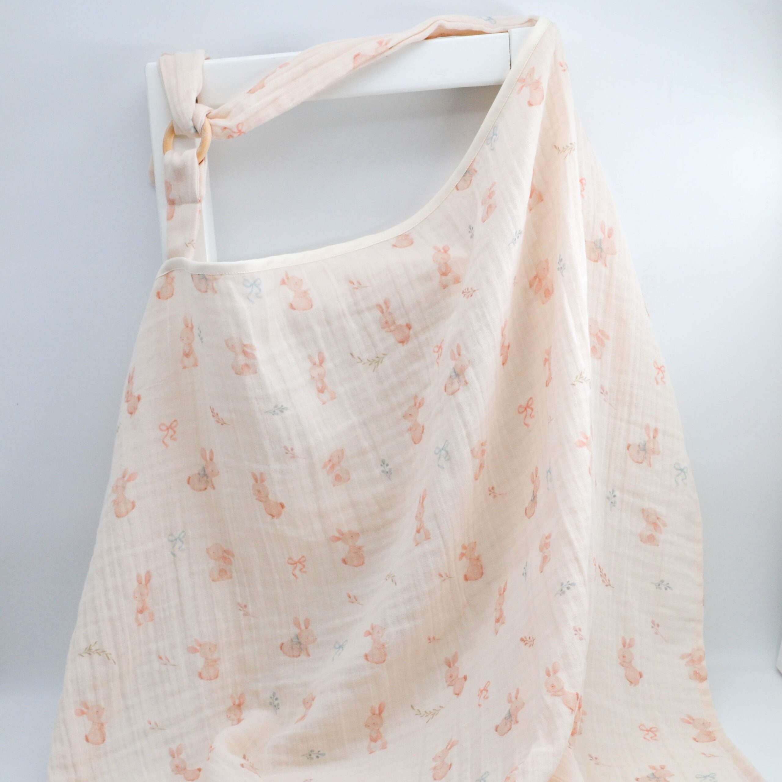 Annelerin konforunu ve pratikliğini ön planda tutan bu ürün, hem emzirme sırasında rahat bir kullanım sunar hem de puset örtüsü olarak bebeğinizi güneşten, rüzgârdan ve dış etkenlerden koruma imkânı sağlar. Üzerindeki sevimli tavşan figürleri ve zarif fiyonk detayları, tasarımına neşeli ve sıcak bir dokunuş katıyor.