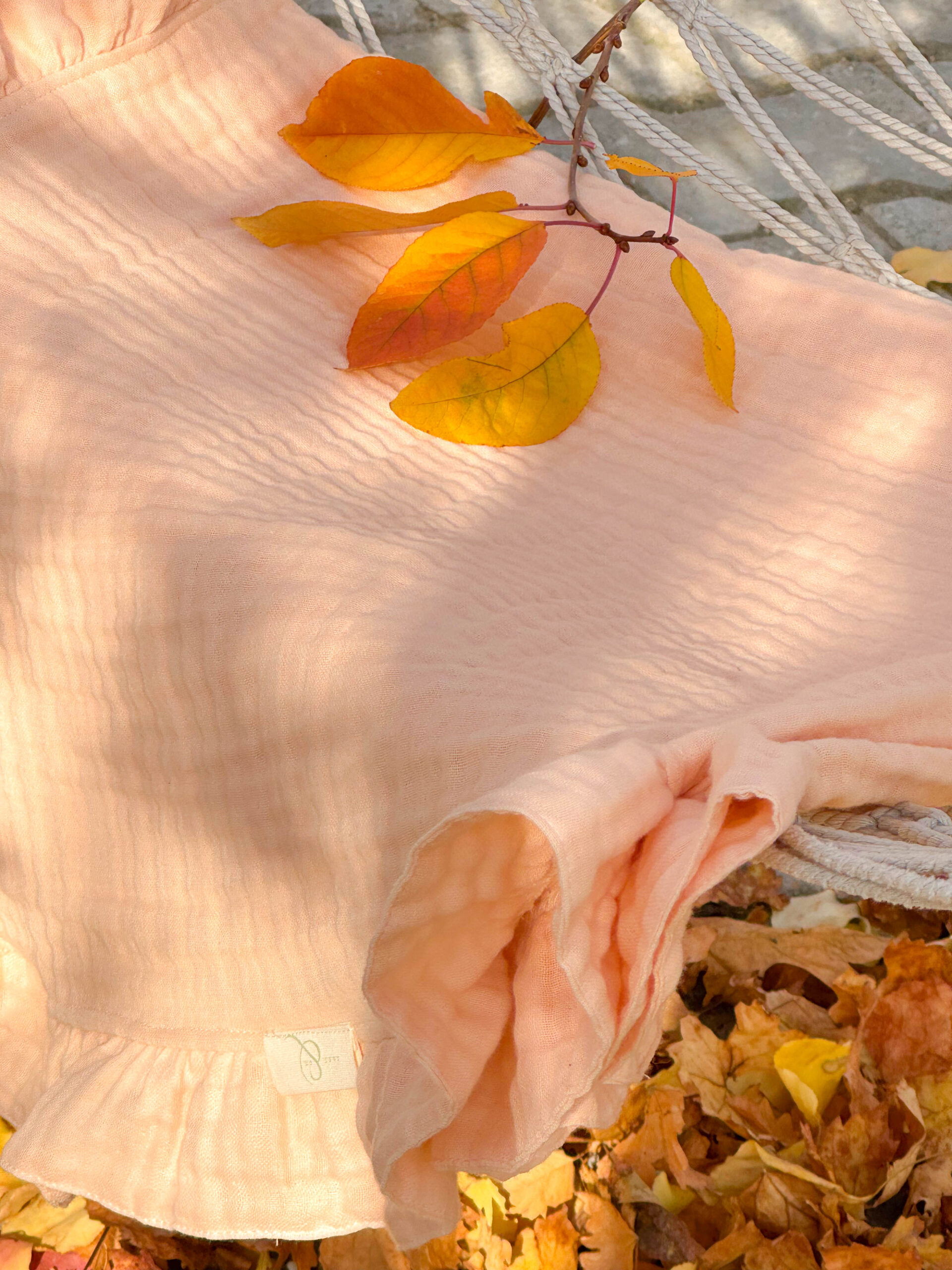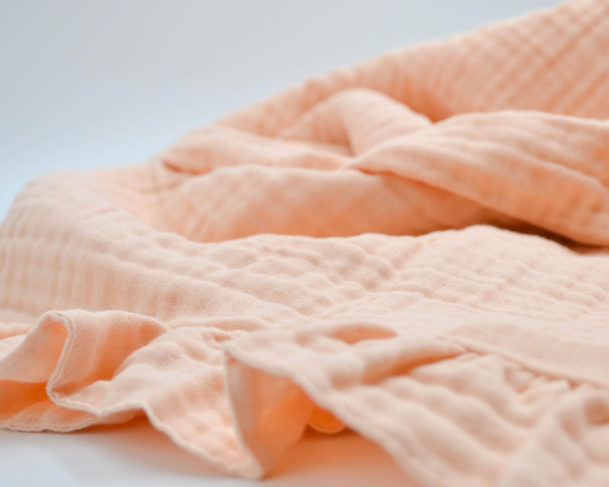 Kavuniçi tonu ve özenle tasarlanmış fırfırlı kenar detayları, bu müslin battaniyeye zarif ve romantik bir karakter kazandırırken, nostaljik görünümüyle bebek odasına sıcak bir hava katar. Doğal dokusu ve yumuşacık katmanları, bebeğinizi her kullanımda nazikçe sararak ona konfor ve huzur sunar.